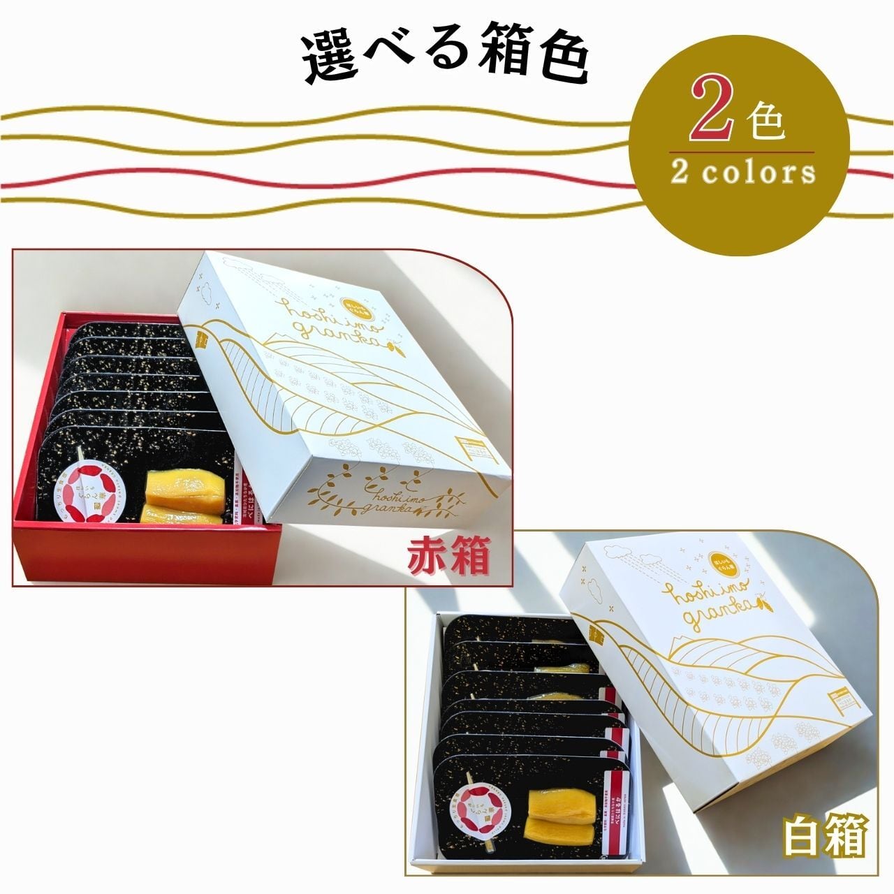 下側の箱は赤か白を選べるため、慶弔どちらの贈り物でも使用できます。